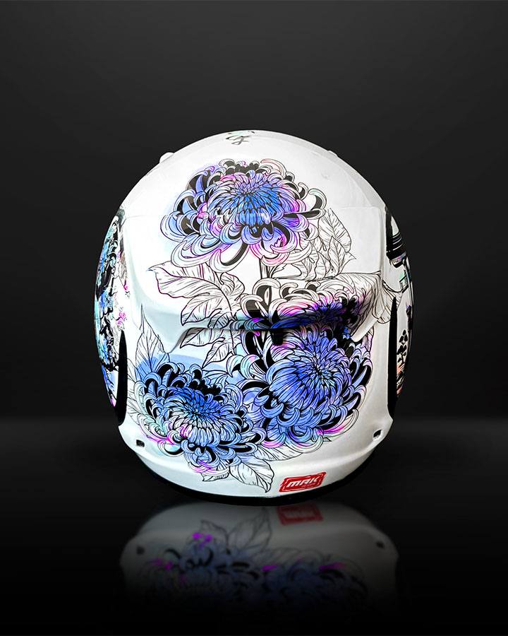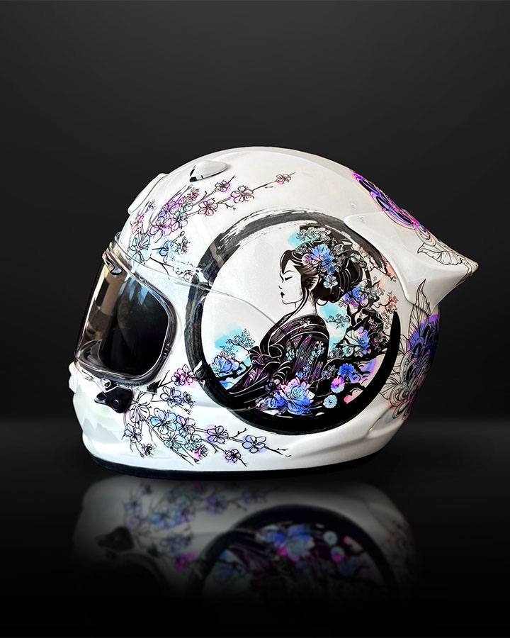 Nous avions eu le plaisir de réaliser le casque de Thierry, il y a quelques mois sur un thème Japon.
