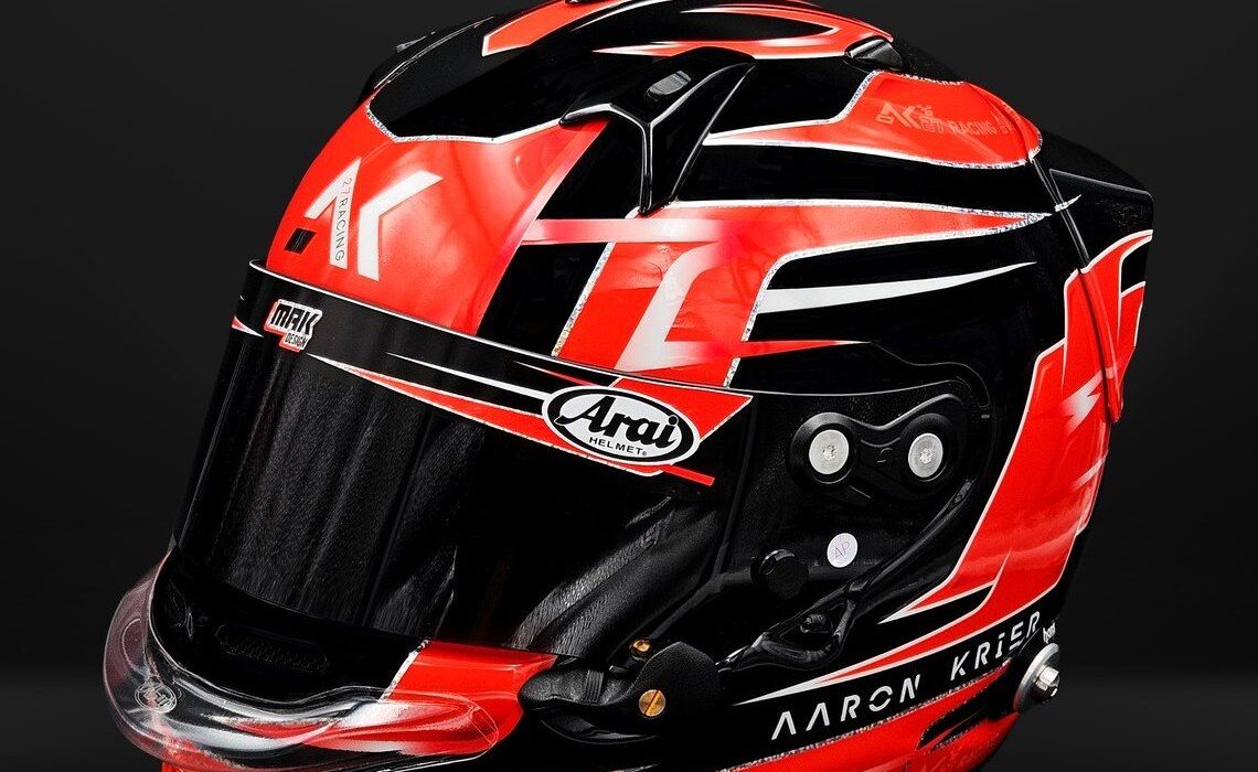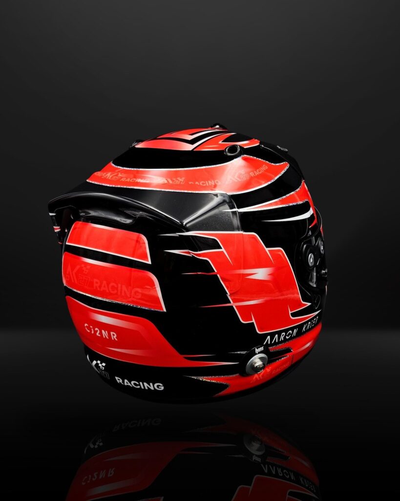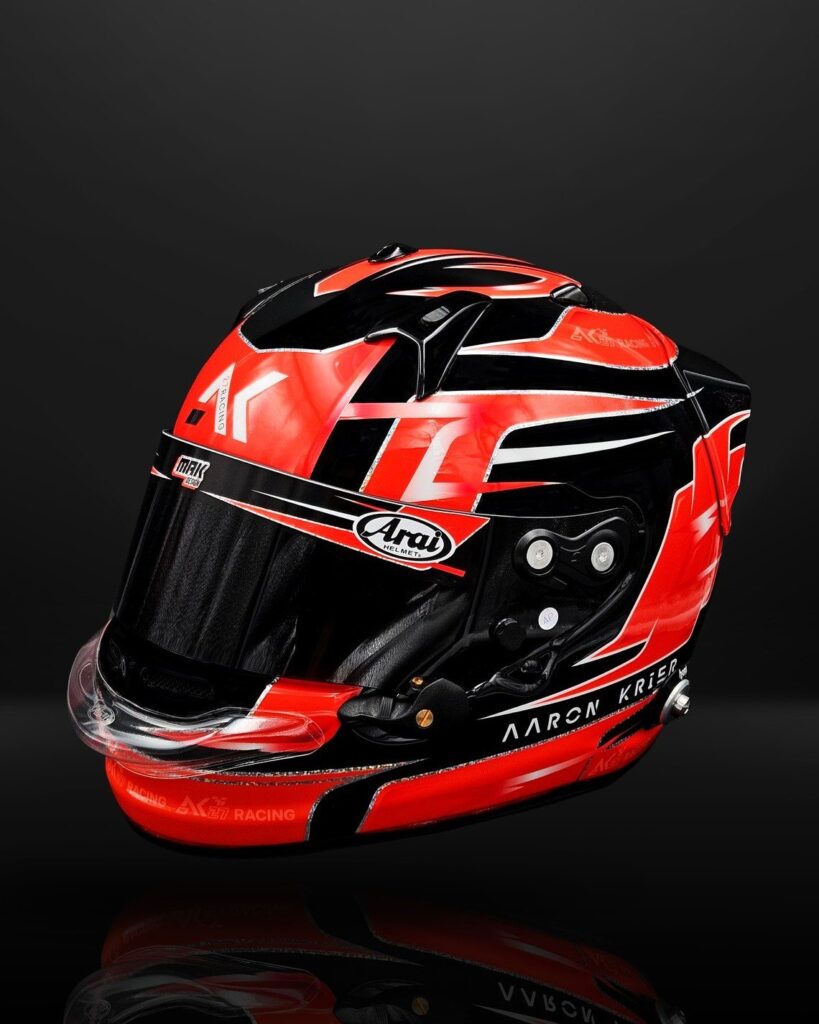 Aaron a chosi le GP7 de la marque Arai et un template revisité par MakDesign ; le modèle THOR….