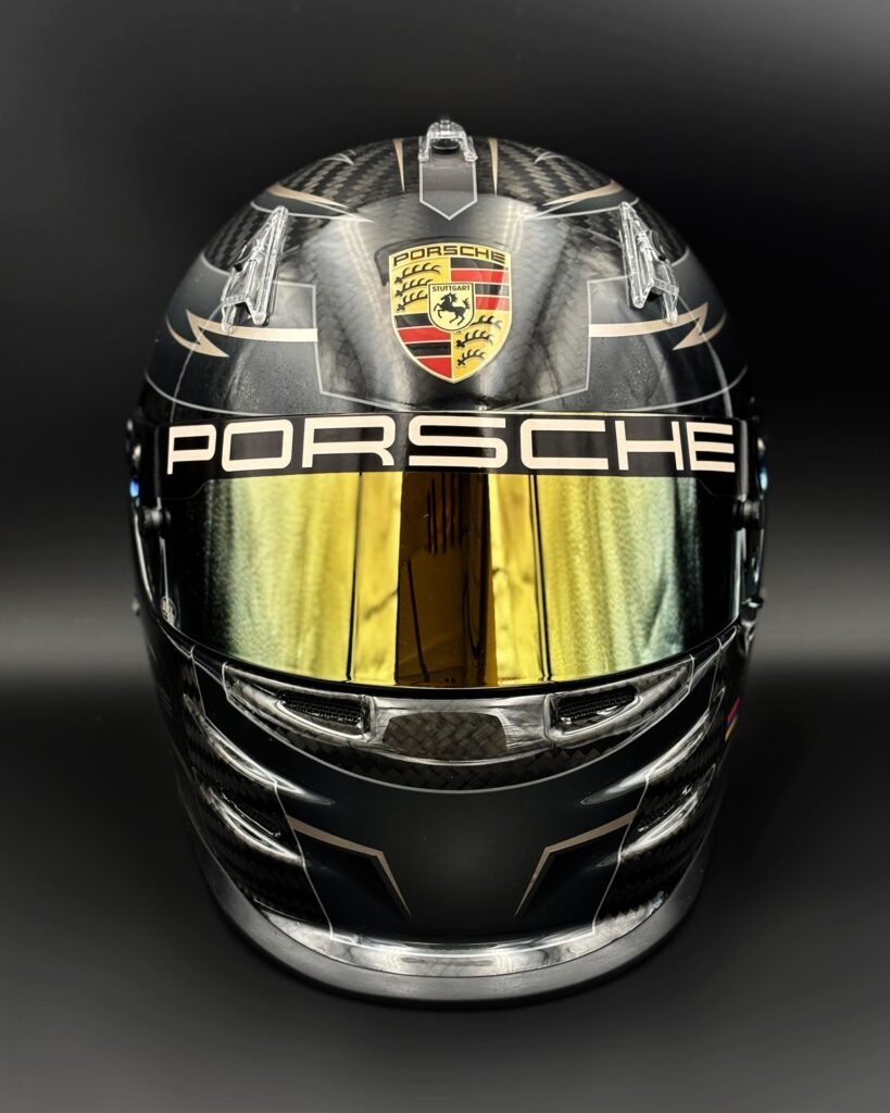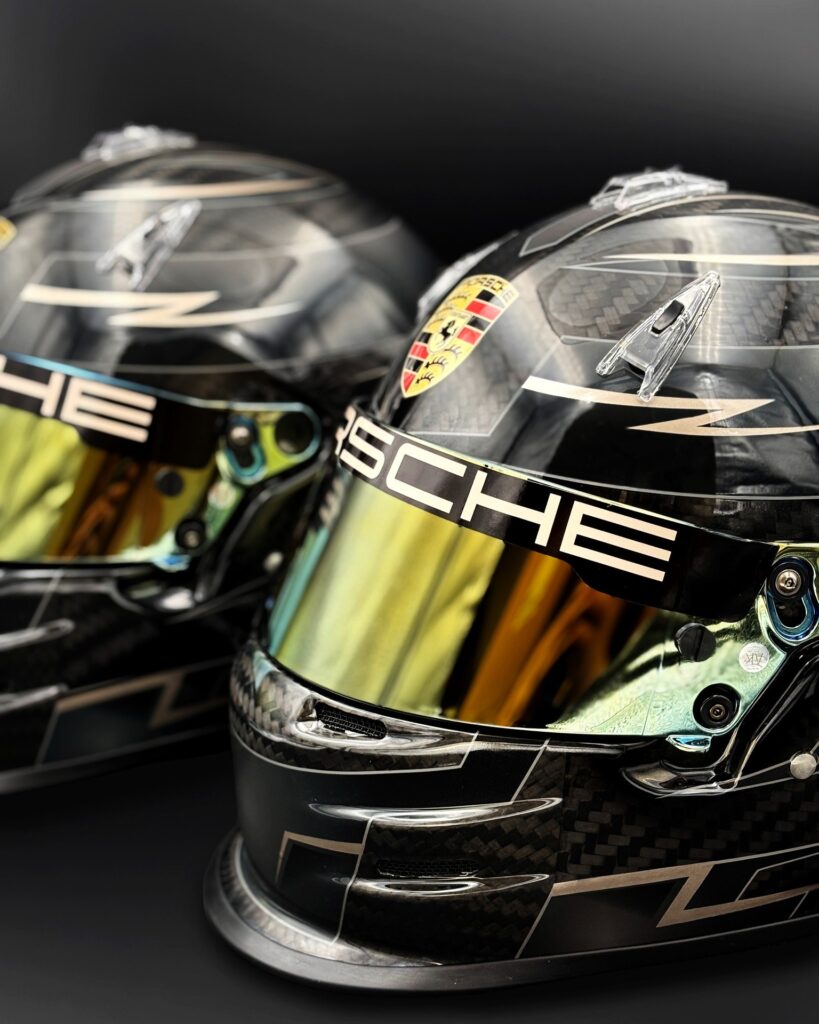 Une jolie série de 3 casques BELL GT3 Carbon modèle Thor revue et corrigée pour cadrer au mieux avec la Porsche GT3 RS.
