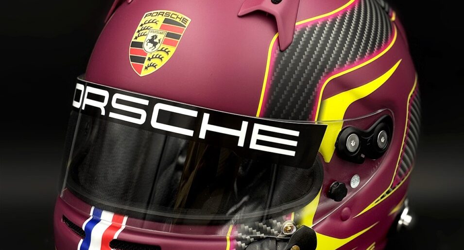 Le coloris Porsche RUBY Red repris sur le casque de notre passionné – totalement raccord avec sa 718… Réailisé sur la base d’un de nos modèles Ares et totalement