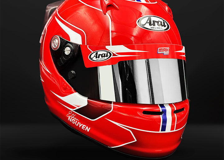 Découvrez cette nouvelle création signée MakDesign : une personnalisation explosive sur une base de ARAI CK6. Pour ce projet, nous avons revisité le célèbre modèle Castle dans un coloris